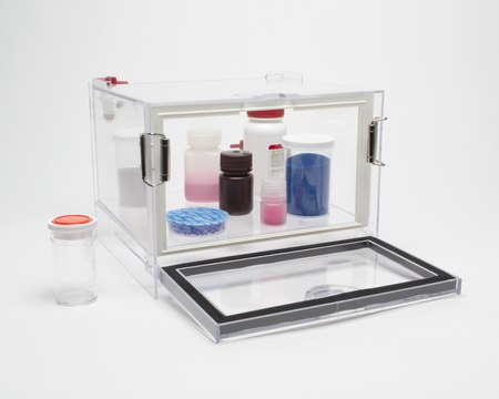 - Gas ports can be closed to use desiccator with standard desiccant cartridges