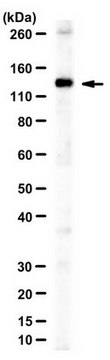 Western Blotting Analysis: Representative lots detected MCM9 in U2OS cells. Transfecting cells with shRNA targeting either MCM8 or MCM9 downregulated cellular MCM9 level (Lee, K.Y., et al. (2015). Nat. Commun. 6:7744; Park, J., et al. (2013). Mol. Cell. Biol. 33(8):1632-1644).