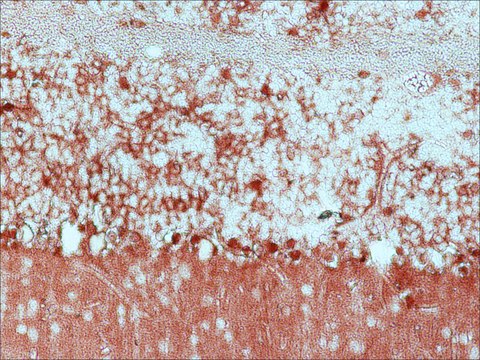 Immunohistochemistry: a minimum working antibody dilution of 1:10,000 is determined using formalin-fixed, paraffin-embedded sections of rat brain.