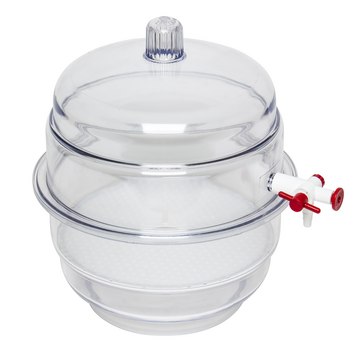Degas liquids quickly and easily in the laboratory or classroom with this small plastic vacuum desiccator. These strong, shatterproof units provide dry storage and protection for sensitive products.